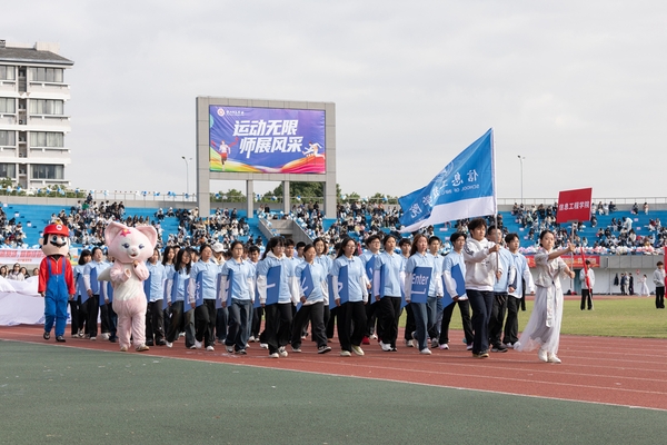 国际教育学院的留学生们身着民族特色服饰、手持各国国旗,以异域风情的舞蹈展现着多元文化魅力,展示了开放包容、热情友好的精神风貌;继续教育学院方阵步伐稳健、气势昂扬,展现着乐学笃行、继往开来的信心;教师八段锦方阵身着整齐服装,以八段锦表演展现千年养生功法的魅力,为运动会注入了文化底蕴;体育学院的武术表演和舞龙舞狮表演将开幕式推向高潮,高难度的动作伴随着激昂的旋律,展现了体院人的激情与活力。
